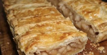 This looks like a crispy Apple Puff Pastry Strudel (Apple Slab Pastry) 🍎🥐 Golden, flaky layers outside with a soft…