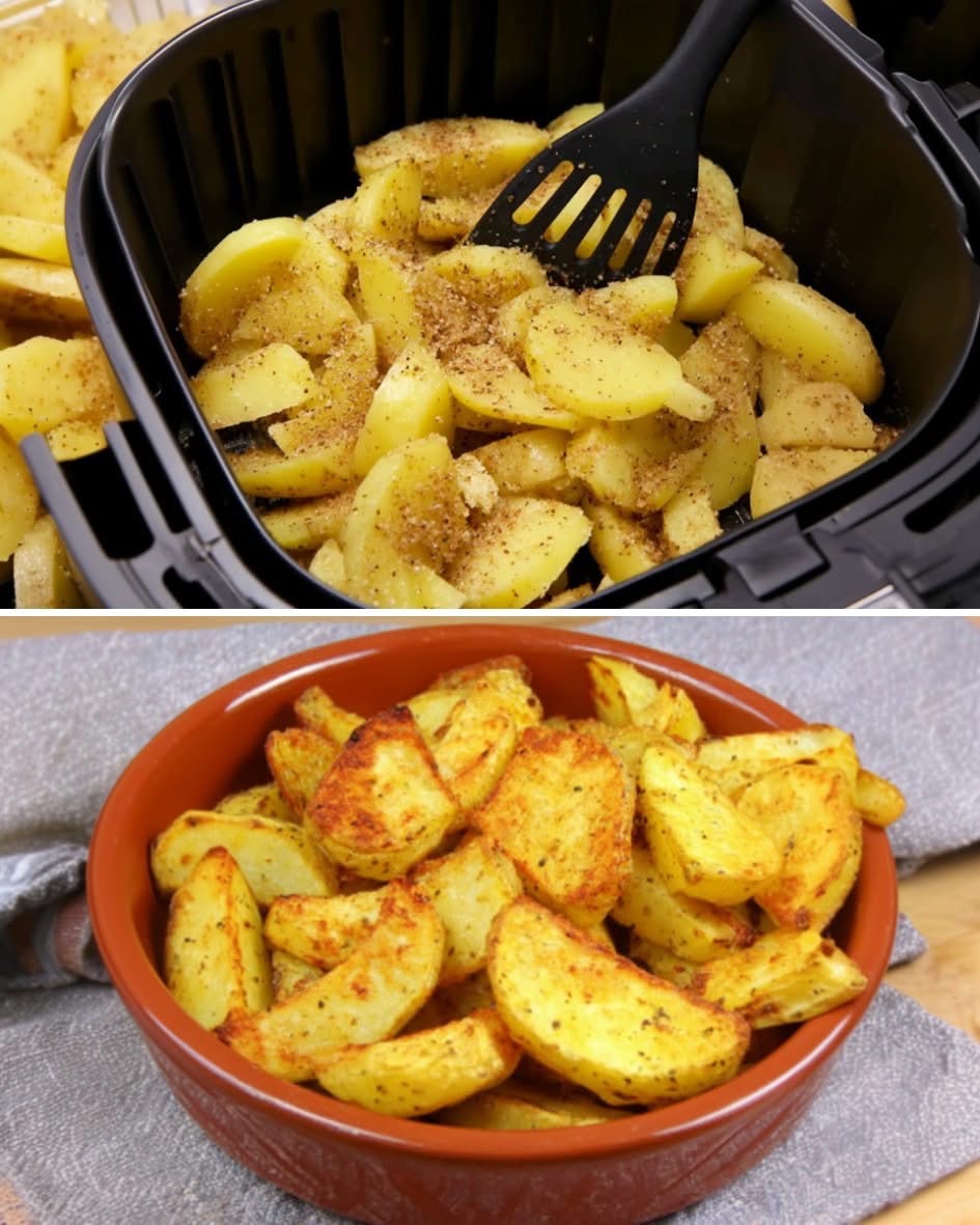 Soak the cut potatoes in cold water for 20 minutes to make them crunchier. Then, dry them well before seasoning.