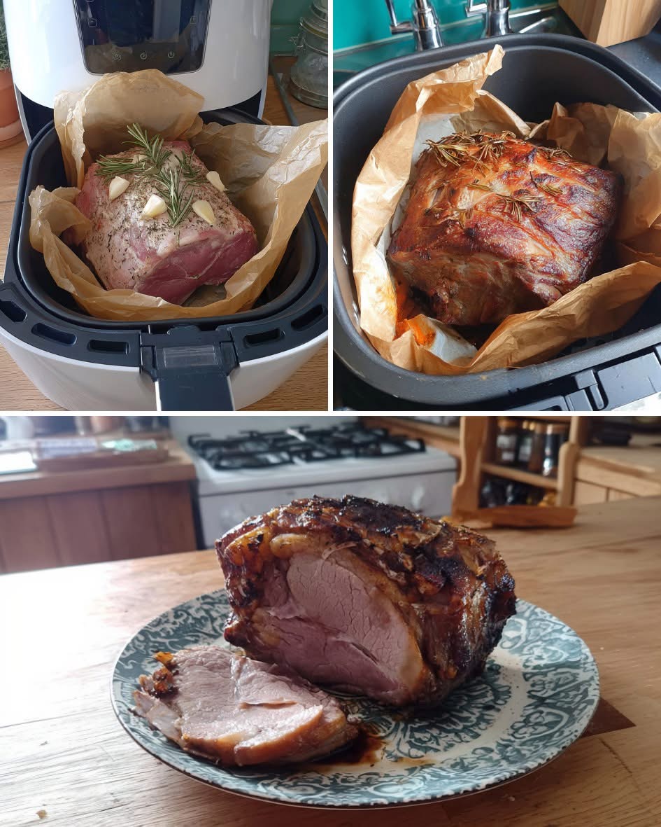 It looks like an air fryer garlic rosemary pork roast (cooked in parchment paper). Here’s the full recipe you can follow.