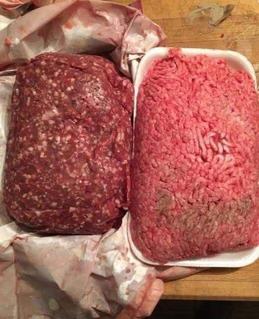 Farm-raised / grass-fed beef is usually deeper red.