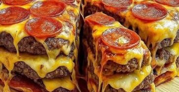 Double Cheeseburger Pizza StackA bold mashup of a juicy double cheeseburger and a loaded pizza — stacked, cheesy, and perfect…
