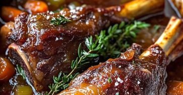 Slow-Cooked Red Wine Lamb ShanksFall-off-the-bone tender lamb shanks slowly braised in rich red wine with herbs and vegetables — pure…
