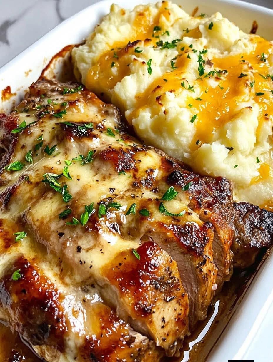 Garlic Parmesan Chicken & Steak Bake with Cheesy Loaded Mashed Potatoes