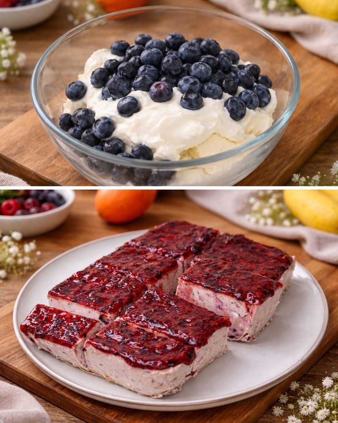No-Bake Blueberry Banana Protein Yogurt Cake