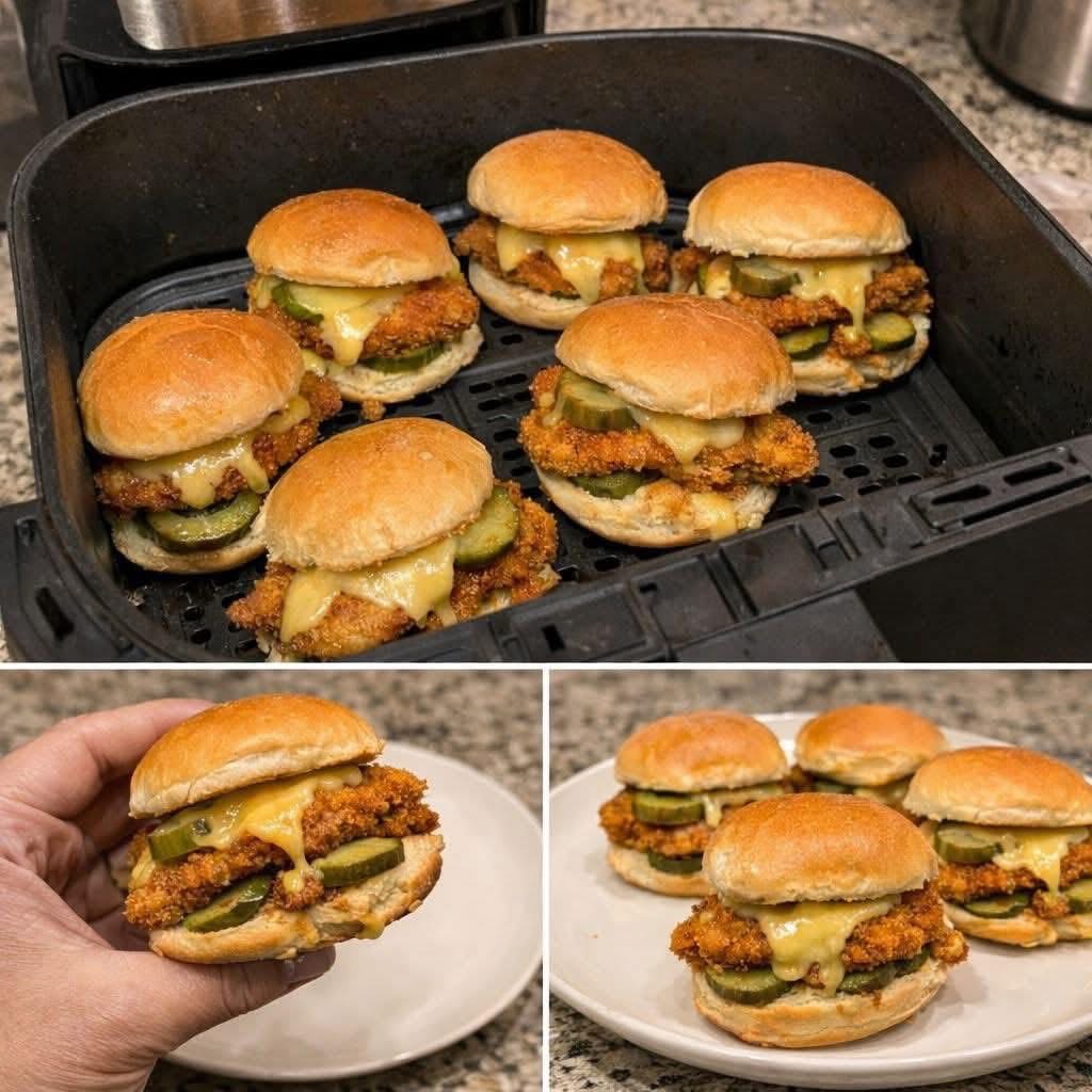 Air fry the assembled sliders for 1–2 minutes to slightly melt the cheese and warm the buns. The result is restaurant-style crispy chicken sliders right at home.