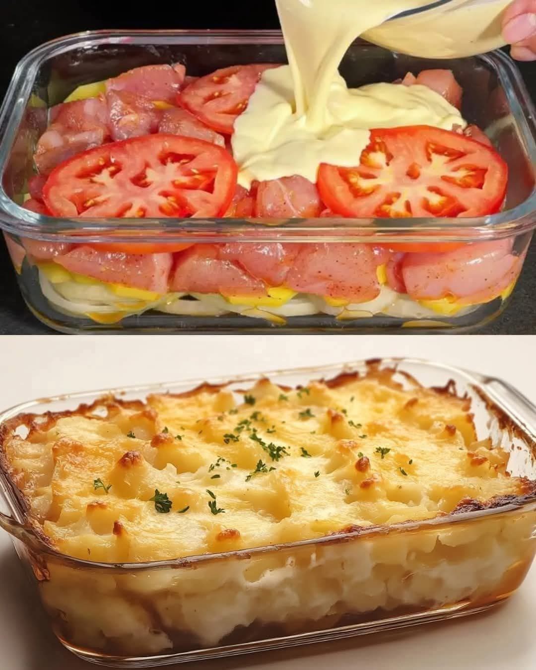 Here’s a simple, hearty Chicken and Potato Casserole with Garlic Sauce Salad you can make at home—creamy, filling, and full of flavor 😋