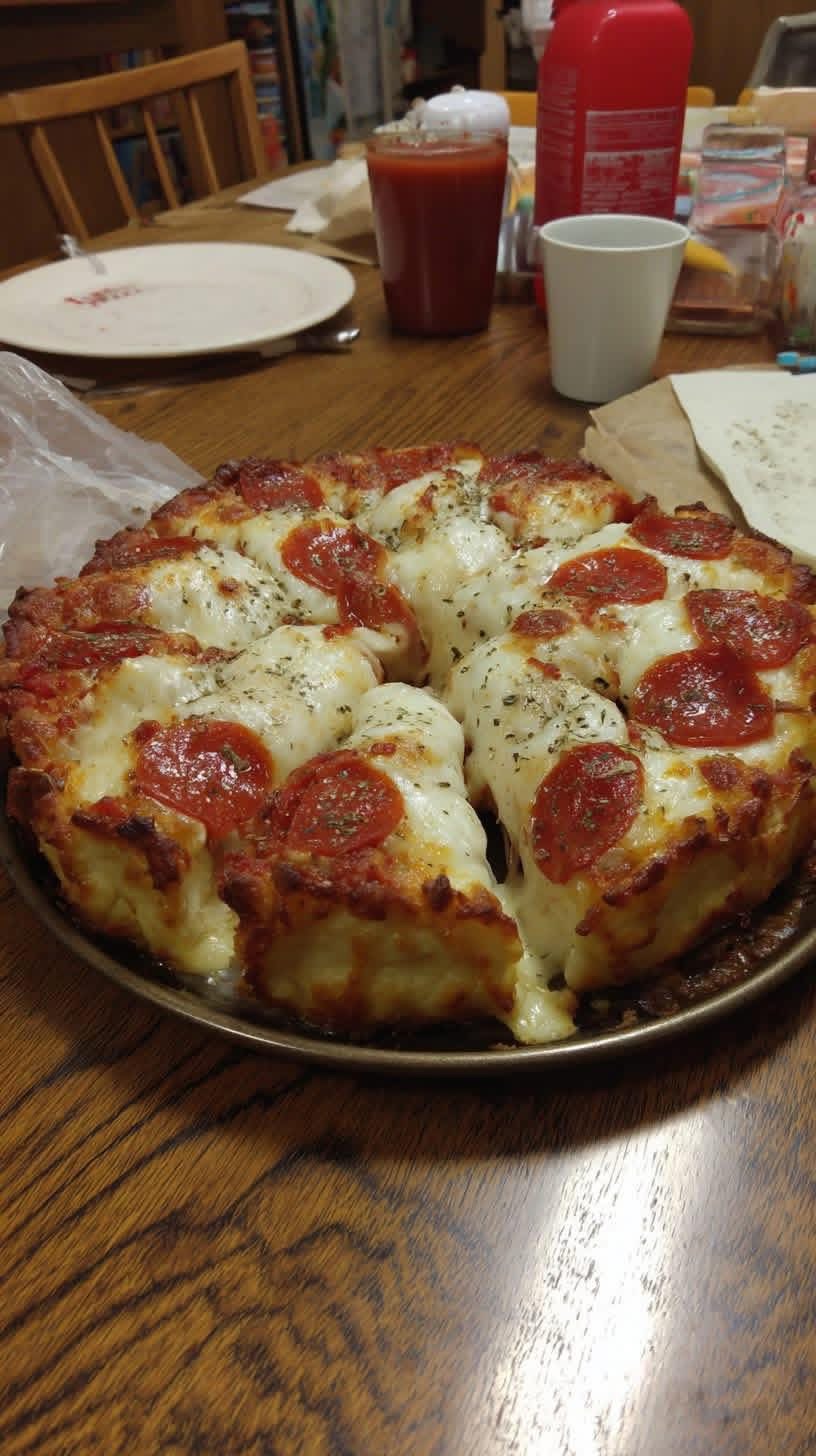 Spread the beef mixture into a greased pie dish and top with pizza sauce and cheese.