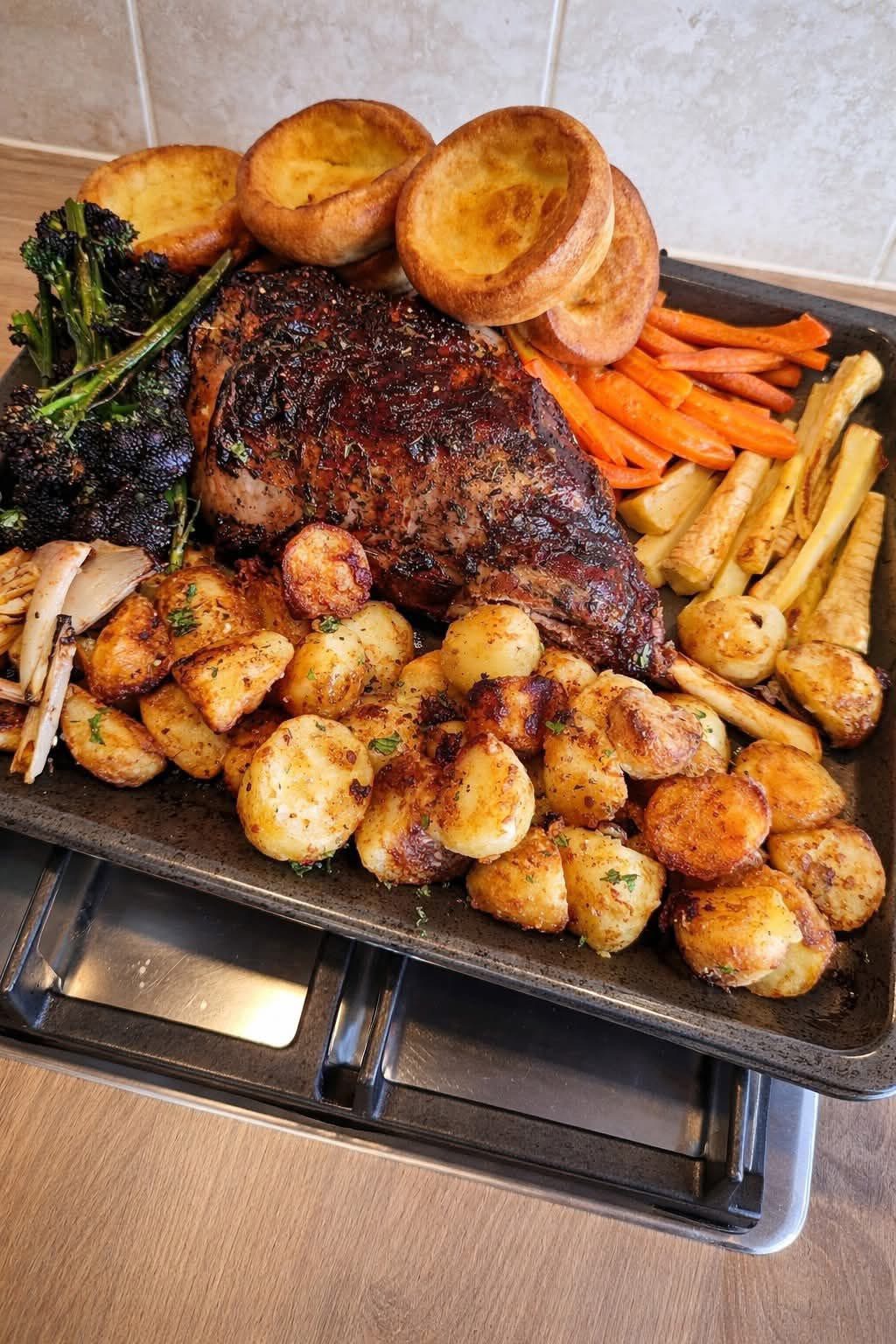 Let it rest for 15–20 minutes before slicing. - Roast Potatoes