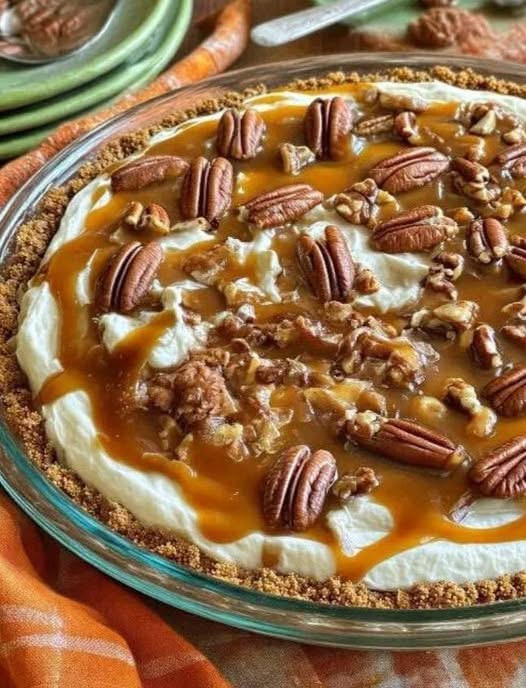 This Caramel Pecan Delight Pie is a rich, creamy, and irresistible no-bake dessert that’s perfect for any occasion. It combines a buttery graham cracker crust with a smooth and fluffy cream cheese filling, topped with crunchy pecans and luscious caramel drizzle. Every bite delivers a perfect balance of sweetness, creaminess, and nutty crunch—making it a guaranteed crowd favorite without even turning on the oven.