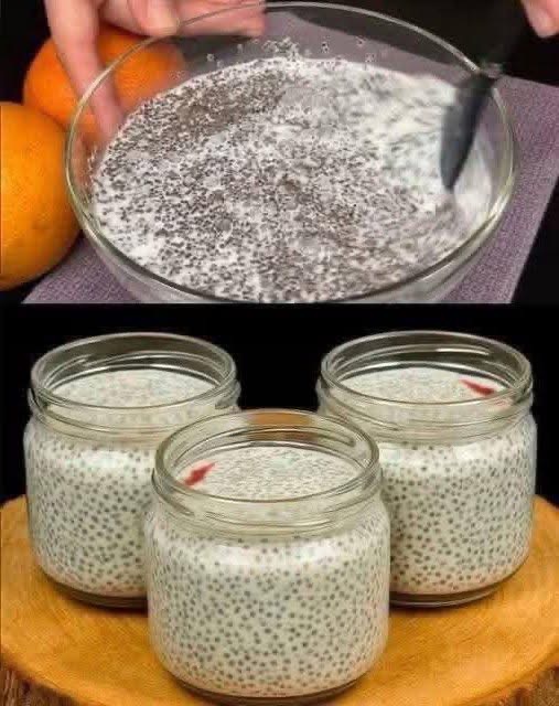 - In a bowl or jar, add milk and chia seeds.