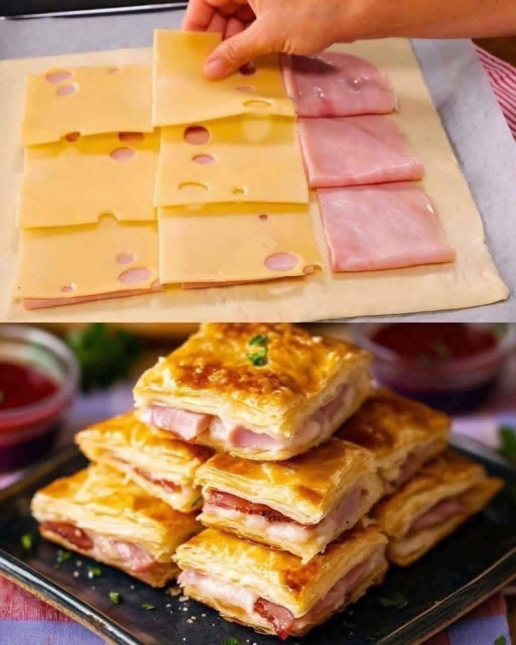 These puff pastry pockets are golden and flaky on the outside, with a warm, gooey filling of melted cheese and savory ham inside.