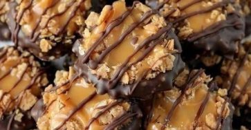 Baked Samoa Cookies (Homemade Version)Buttery shortbread cookies topped with gooey caramel, toasted coconut, and dipped in chocolate — just like…