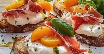 Cheesy Burrata Crostini with Prosciutto & Peaches **Ingredients (Serves 4-6): **Directions: