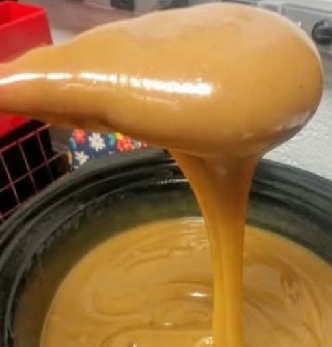 - Add the brown sugar and corn syrup, stirring constantly until smooth and combined.